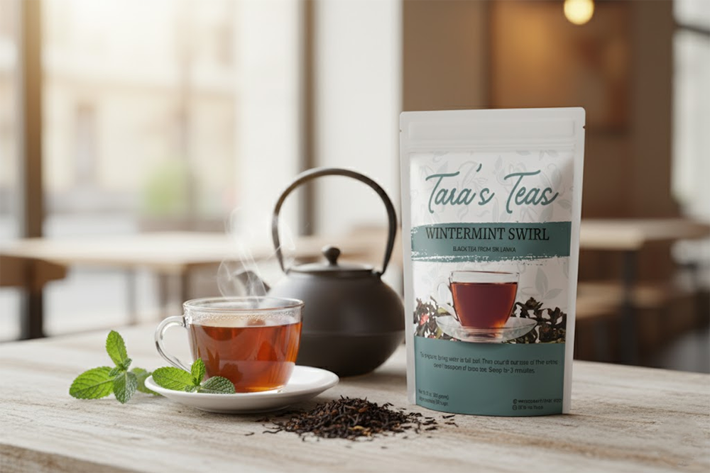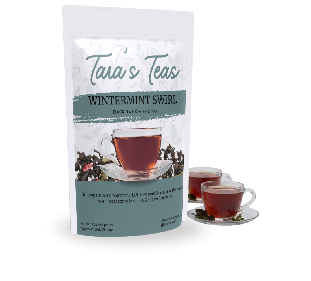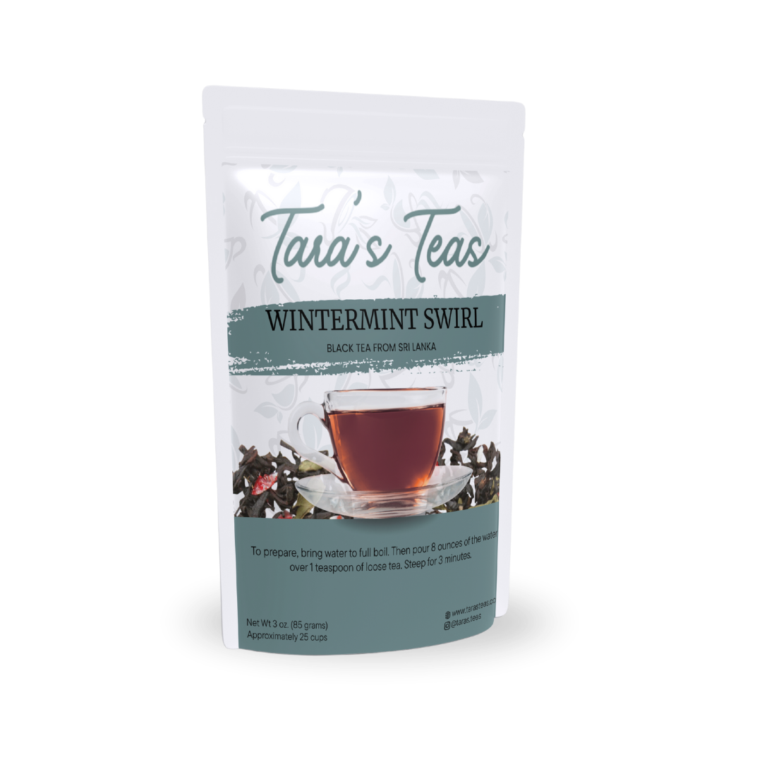 Wintermint Swirl by Tara’s Teas is a holiday-inspired blend crafted from premium Sri Lankan black tea, refreshing peppermint leaves, and real candy cane pieces. It’s a cup that celebrates the warmth of winter and the sweetness of the holidays – a festive favorite for cozy nights and joyful mornings.